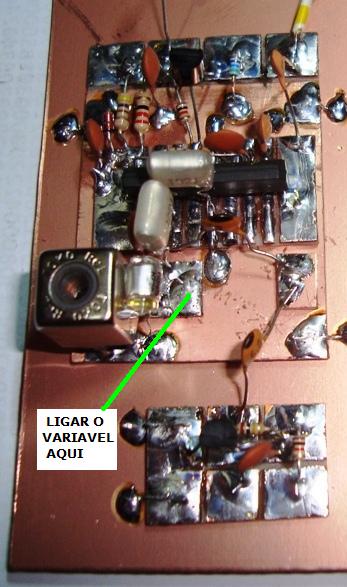Ligar o capacitor variavel na ilha indicada pela foto e o terra