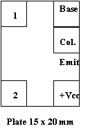 para a direita, ilha "coletor" fio rosa do +8V, resistor de polarização