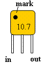The Varicap the I use has a blck body with a white list, with 5pF in 8V and 25pF in 0V. I have it in my surplus box.