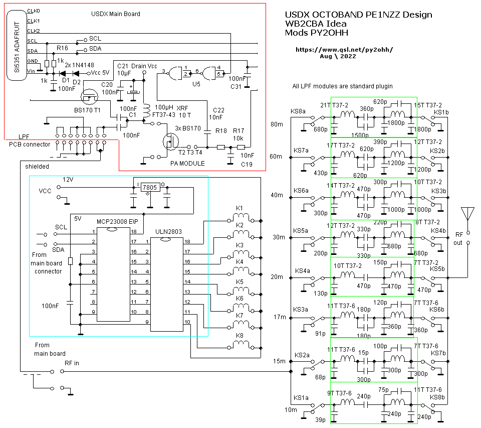 Na montagem deste 8 bandas, usamos nos modulos do LPF, capacitores SMD