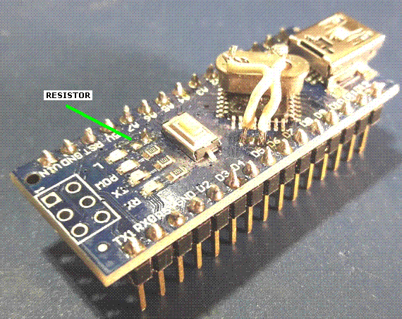 to the flashing led (the resistor is next to the "L" led, next to pin