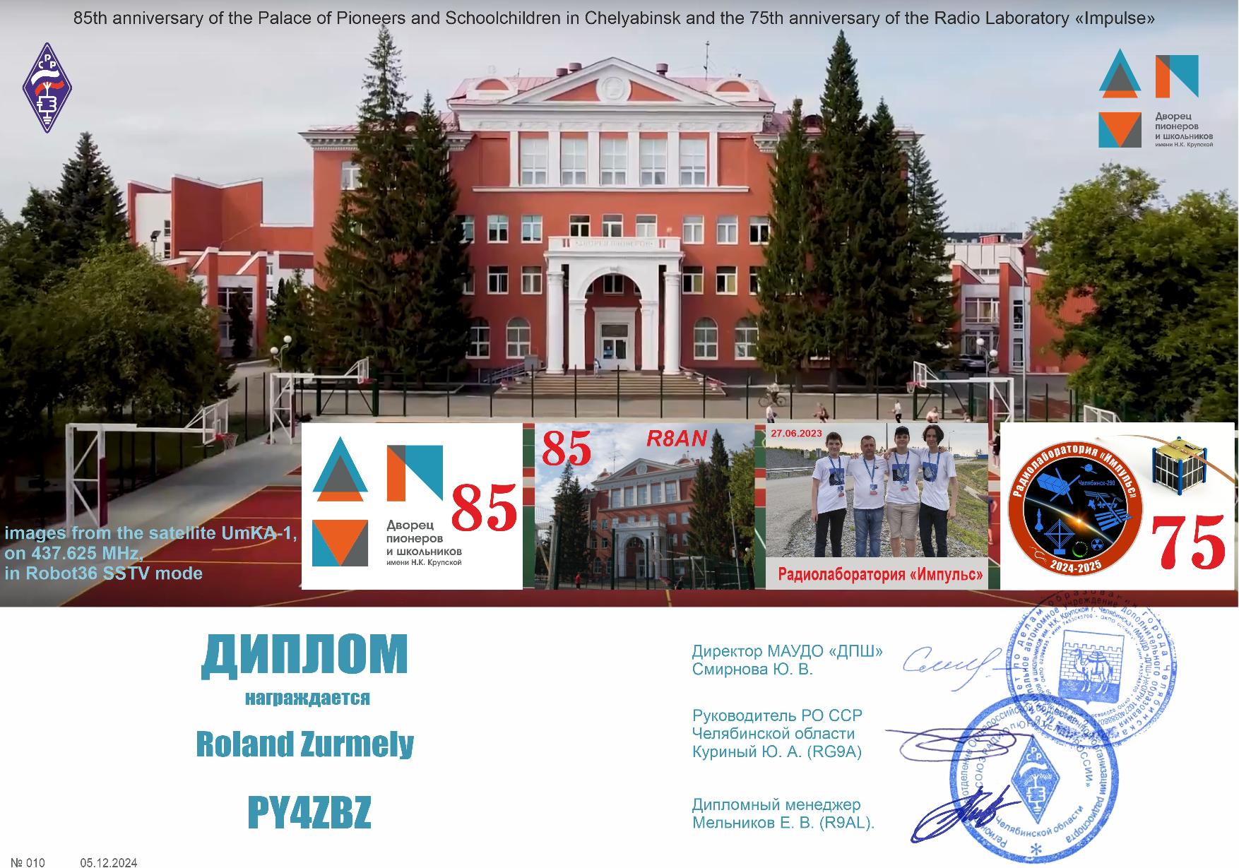 Ddiploma do New Year's space diploma program "Space-π", pela recepção dos 6 passwords dos Monitor-1, Monitor-4 e UTMN