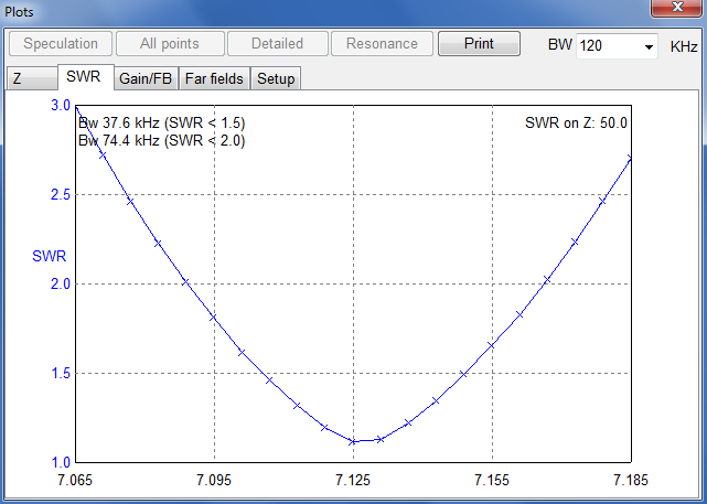 O calculo da impedância R+jX, ganho, ROE, etc..., com a antena a 10 metros de altura, é o seguinte: