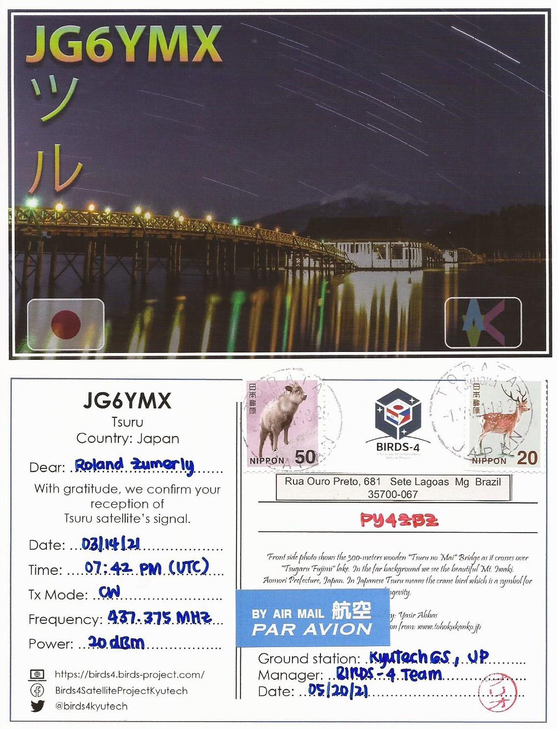 Em 08-06-2022 recebi os QSL pela recepção da telemetria CW do GuaraniSat- e do Tsuru: