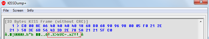 Nos dados em formato KISS recebidos, é possível ver a posição do satélite: