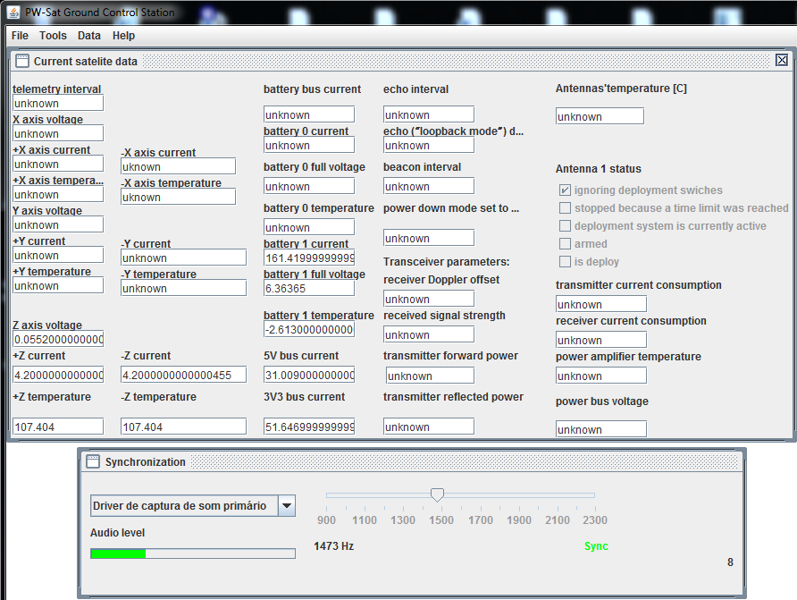 Em 19-03-2012 recebi alguns dados de telemetria do PW-Sat, na orbita #494, em VHF: