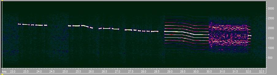 Sinal BPSK 1200 AX-15 SSB, onde é possível ver a "escorregada" típica do transmissor (não é doppler):
