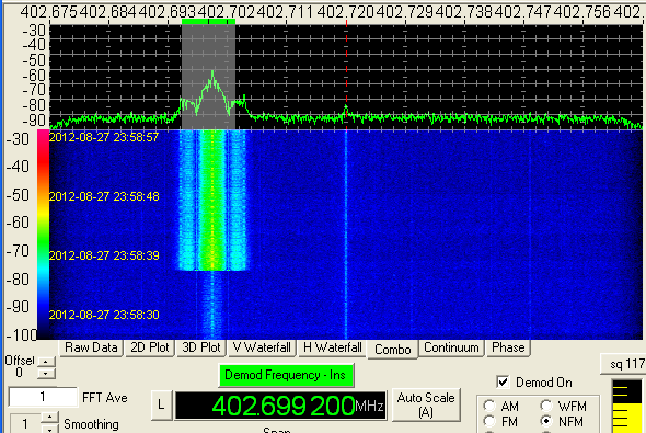 Estou observando, na sondas lançadas em Confins, um aumento repentino da ordem de 20 dB na potencia de transmissão, 15 mn após a sua energização no solo (frame 900), como se estivesse passando do modo de baixa potencia para potencia nominal. A figura seguinte mostra esse fato: