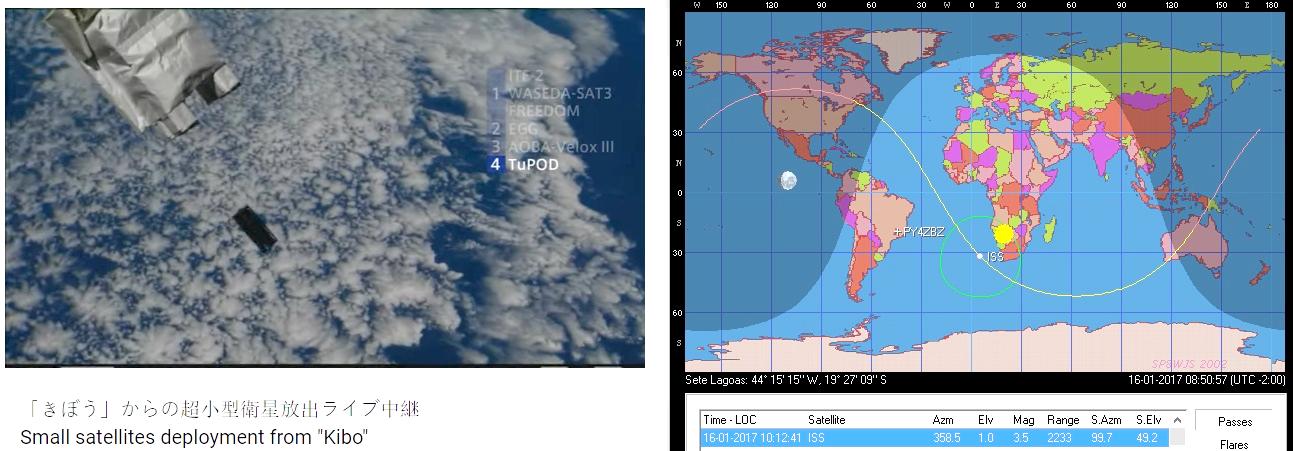 A figura seguinte mostra o momento exato da ejeção do TuPOD da ISS, e a posição da ISS no momento: