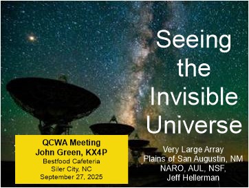 Chapter Members receive our quarterly newsletter, the QCWACKER.The Chapter is open to members in good standing of the National QCWA organization. The National QCWA organization is open to Amateur Radio Operators who were first licensed at least 25 years ago and are currently licensed (you do not need to have been continuously licensed). National dues are $25 per year (effective April 1, 2007) and entitle you to receive the QCWA Journal online.