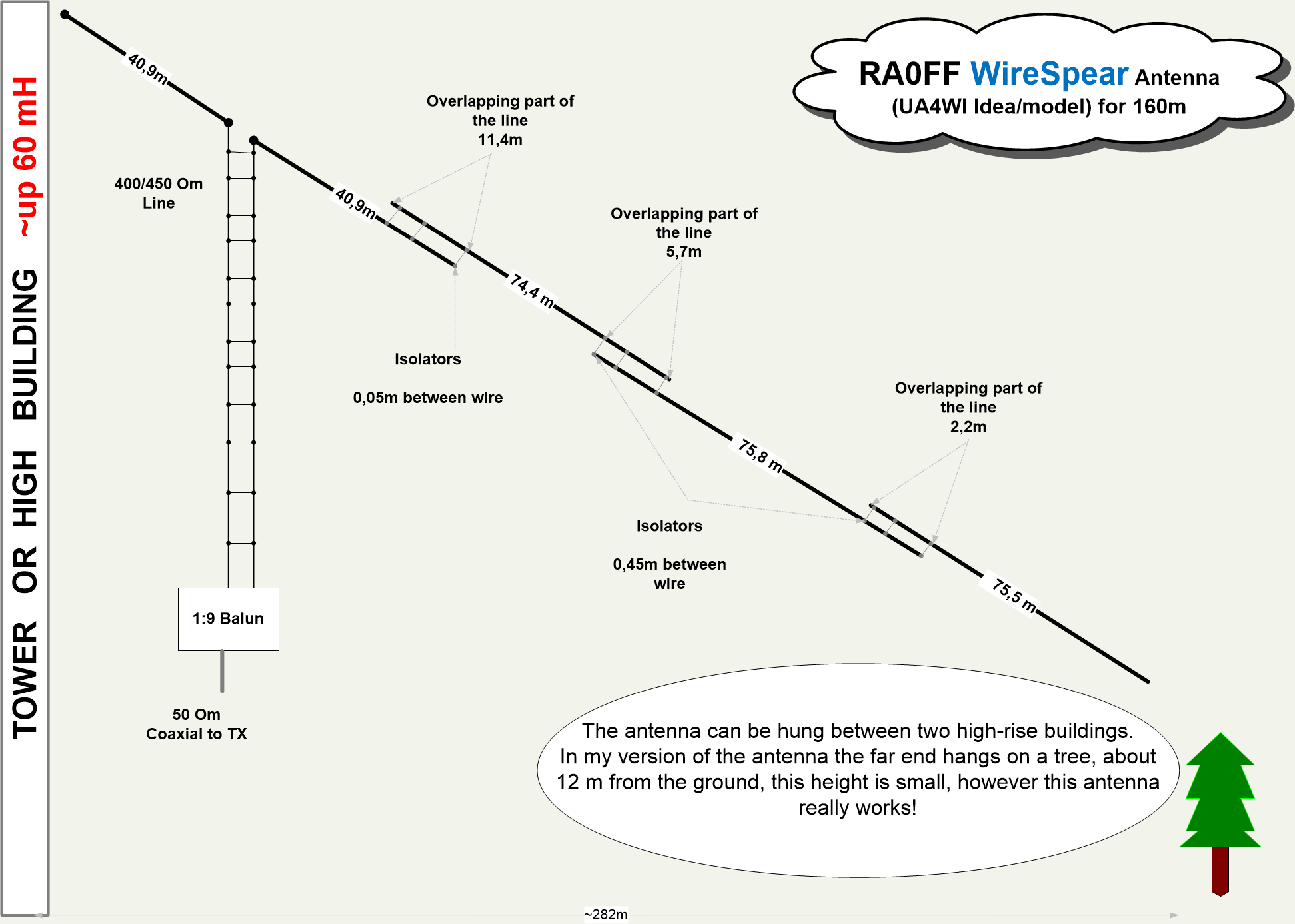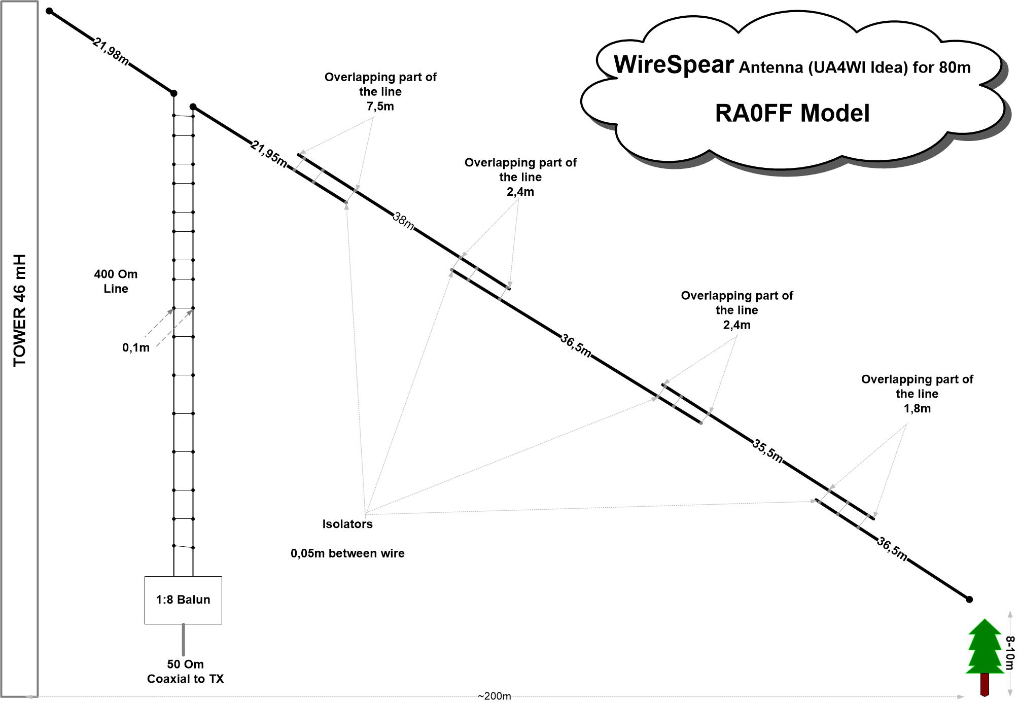 The file for the MMANA program can be downloaded here Everything else is clear from the diagrams and pictures, photos. The direction of radiation differs from the WS-antenna variant by 80 m because for 160 m I did not have the height of the suspension of the upper point.