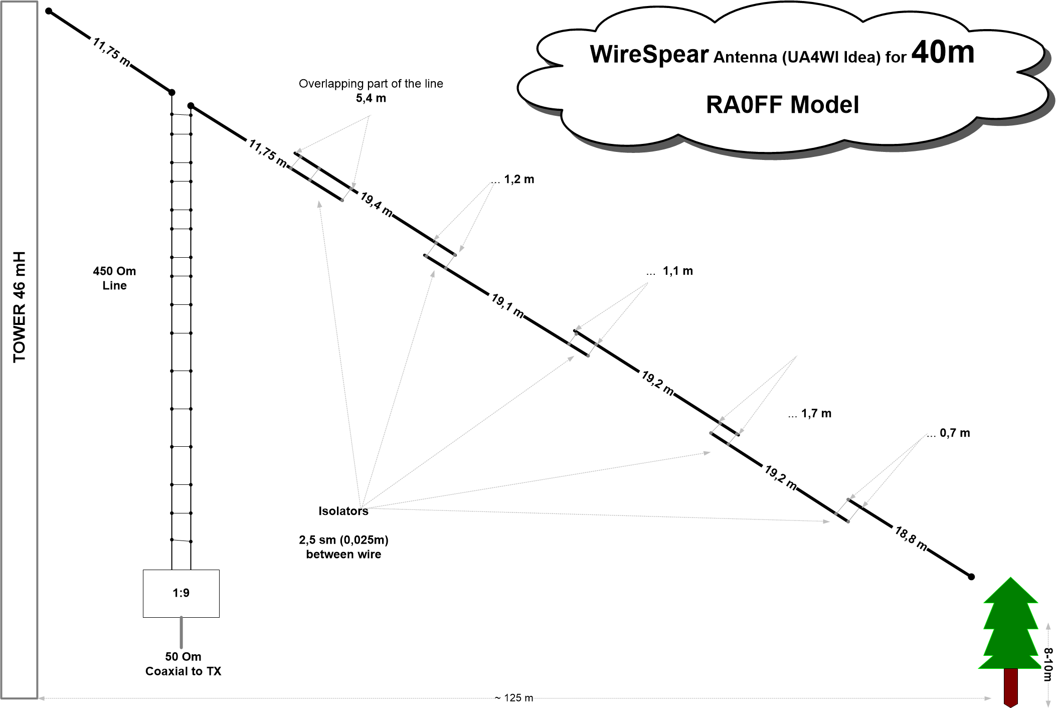 WireSpear (WS) antenna for 40m (bi-directon to EU and NA)