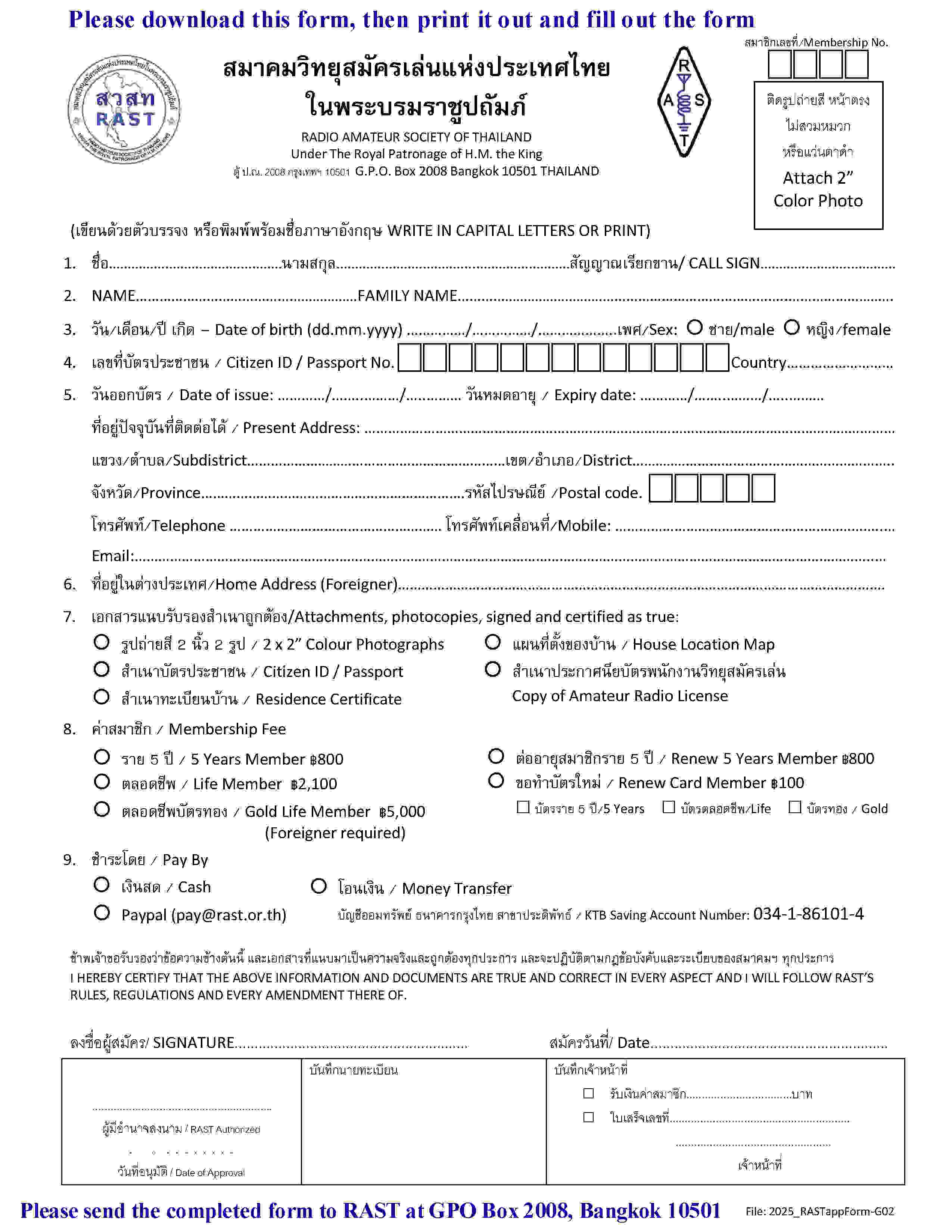 RAST has been licensed by the NBTC to operate using the callsign HS72KING during July 1-29, 2024.