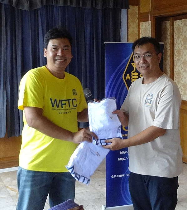 RAST is supporting Champ financially with a 20,000 baht donation, while at the meeting, G. Simon Radio, the Icom dealer, also stepped forward to announce a donation of 30,000 baht towards his expenses. Meanwhile, RAST President also appealed to members at the meeting for donations to support his expenses for a three week trip to Germany, saying that those who made a donation of 1,000 baht or more would receive a free T-shirt.