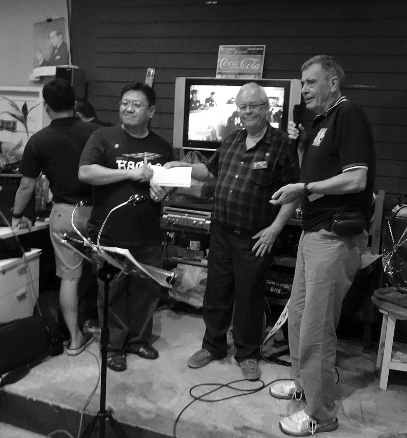 HS0ZDX had some good news to announce when they jointly presented a cashier's cheque for 71,400 baht (US$2,000) on behalf of Fred Laun, K3ZO and HS0ZAR, and the YASME Foundation. The YASME Foundation had made this donation to support RAST's investment in a headquarters office and for setting up the HS0AC club station at a new location following subsidence problems at the campus of the Asian Institute of Technology (AIT).