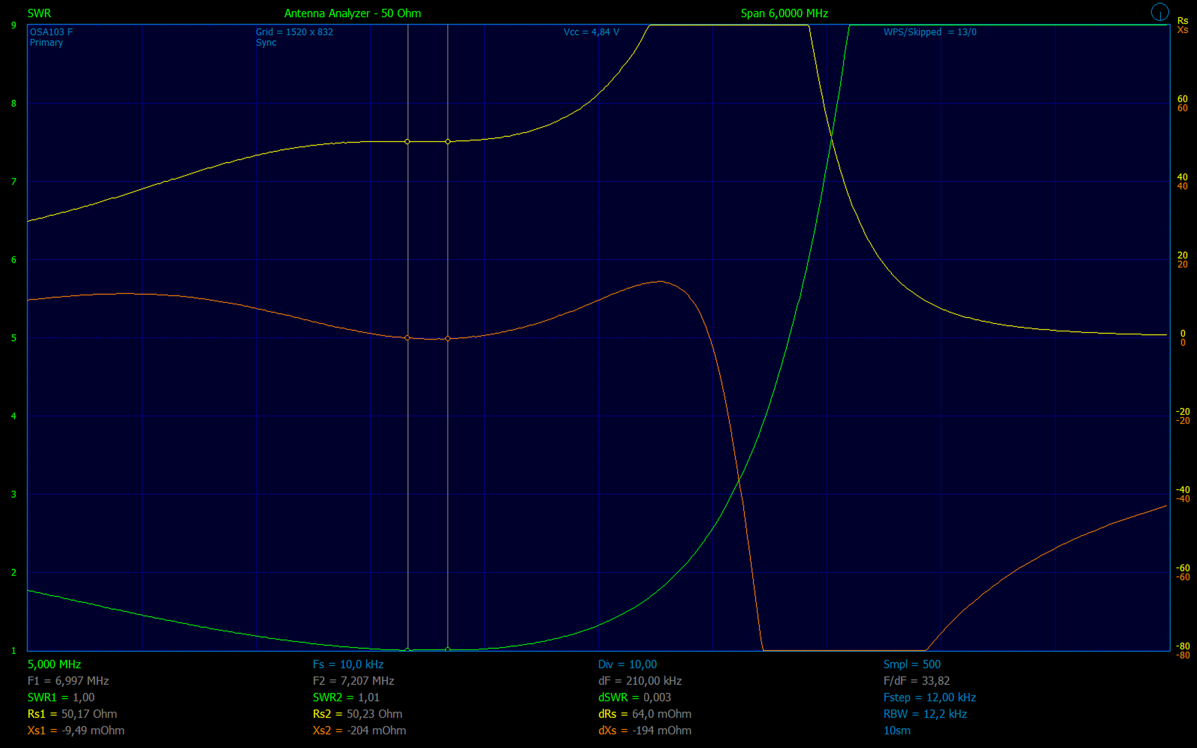 В транзисторных усилителях уровень гармоник не должен превышать –45 dB. Если использовать сборку из двух транзисторов на одной подложке LDMOS, уровень певой гармоники на выходе такого усилителя может быть –20-40 dB, а вторая гармоника обычно давится не более -10-15 dB. Поэтому в расчете фильтра именно второй гармонике и уделяется основное внимание. Данный фильтр давит вторую гармонику белее чем на -70 dB! Это подавление значительно лучше, чем в классическом трехзвенном фильтре (где оно обычно состовляет не более -50dB). Первая гармоника подавляется в среднем на -30 dB, в целом фильтр имеет большой запас по подавлению первой и второй гармоники. Так же к достоинствам данного фильтра можно отнести, меньшее количество дорогих колец, простая и логически понятная настройка фильтра. Фильтр расчитывался в программе