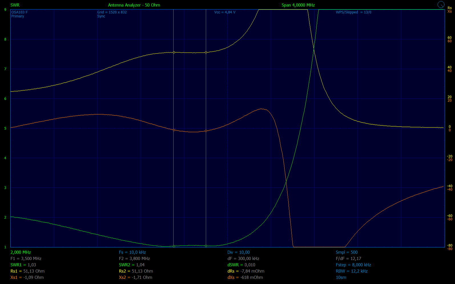 Диапазон 80 метров, расчетные значения, первая гармоника -35 dB, вторая -82 dB