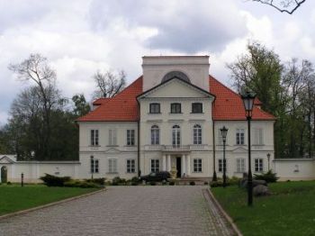Na wprost od głównej bramy wjazdowej pałacu stoi zabytkowa kapliczka z piękną rzezbą patrona strażaków Św. Floriana wzniesiona na przełomie XVIII i XIX wieku.