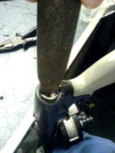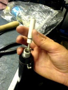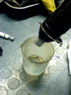 5 Odkręcamy zawór-potrzebne jest specjalne narzędzie które można zrobić na przykład z pilnika. Uważamy bo teraz może wylecieć jeszcze olej