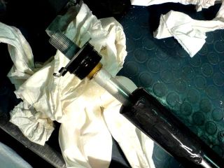 1 Spuszczamy powietrze z kuszy. Zakrywamy papierem zawór bo będzie pryskać dookoła olejem.