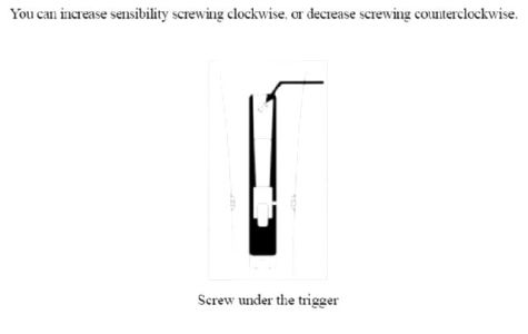 Regulacja czułości spustu . Dokręcając śrubkę pod spustem zgodnie z ruchem wskazówek zegara zwiększa się czułość