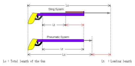Do tego dochodzi długość lufy, hydrodynamiczne właściwości strzały i moc kuszy czyli w przypadku kuszy na gumy to ilość gum a w pneumatycznej ilość atmosfer. A są kusze pneumatyczne długie nawet na 130cm.