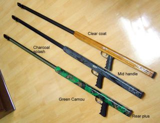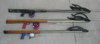 60cm - polowanie w grotach, szczelinach albo przy złej przejrzystości wody. Łatwo się nią manewruje ale ma ograniczony zasięg. Często używana z trójzębem a nawet pięciozębem. Długość strzały 100cm.
