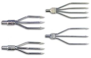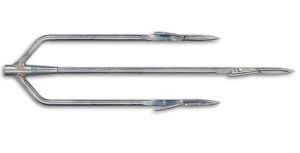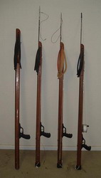 - to po prostu włócznia z grotem na końcu. Polowanie z włócznią jest najbardziej ambitnym sposobem upolowania ryby. Trzyma się ją wzdłuż ciała, ręką odchyloną do tyłu za biodro. I uderza w rybę z całej siły. Obecnie mało kto używa tej broni , choć widuje się spearos z takim sprzętem na Karaibach i Pacyfiku. Kiedyś tak właśnie polował Guy Gipatrick i Hans Hass.
