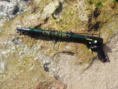 Po użyciu w morskiej wodzie kuszę trzeba koniecznie przepłukać porządnie słodką wodą (wystarczy parę minut) i najlepiej zostawić ją w pozycji lufą w dół aby olej ściekł do lufy.