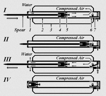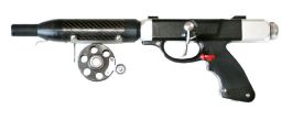 Jeśli używamy powietrza problem jest inny. Potrzebny jest pojemnik 1,1l , adaptor i butla z akwalungu. Najlepsze ciśnienie to 150 / 175 barów. Każdy strzał to około 30 cm3 co daje około 35 strzałów z takiego pojemnika. Ale przy powietrzu ciśnienie spada za każdym strzałem, więc przy pierwszy strzale ciśnienie będzie 175 barów, przy drugim 160, przy trzecim 145 barów itd..