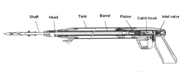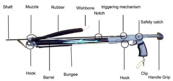 - czyli podwodna proca. Uchwyt to rurka / bambus, aluminium , PVC / do której wchodzi strzała. Do uchwytu przymocowana jest gumowa pętla procy która ma miseczkę o którą opiera się koniec strzały. Strzały mają zazwyczaj średnicę od 1/4'' do 5/16'' i długość od 3 do 5 stóp.