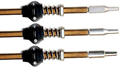 Po lewej głowica open i mocowanie linki overshaft. Po prawej głowica closed i mocowanie linki standard oraz overshaft