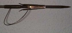 Trójzęby i pięciozęby stosują tylko początkujący polując na małe ryby. Mocowanie do kuszy to pojedyncza linka 1.4 - 1.6 mm /trzy podwójne owinięcia/ - Przy załadowanej kuszy, trzymamy linkę za dwa końce, jeden wychodzący od suwaka na strzale a drugi od prowadnicy linki przy wylocie lufy i prowadzimy ją do zwolnienia na spuście,potem z powrotem do prowadnicy na wylocie lufy i z powrotem do spustu. Przy Mambie110 to około 6m a przy Asso115 około 7m.