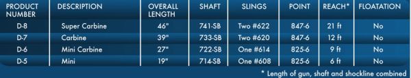 Wersje 850,950,1050,1150 i 1250cm. Nowa rękojeść o nachyleniu 30 stopni z nowym systemem spustowym. Otwarta głowica lufy z automatyczną blokadą strzały na głowicy. Szybkie i łatwe zakładanie strzały przy użyciu zatrzasków. Brak szumu przy zanurzaniu. Duża precyzja celowania. Lufa z polimerów węglowych z zintegrowaną prowadnicą strzały. Doskonałe wyważenie i manewrowość. Gwarantowana szczelność lufy do 40m. Regulacja mocowania strzały w zależności od średnicy. Konstrukcja i dla prawo i leworęcznych