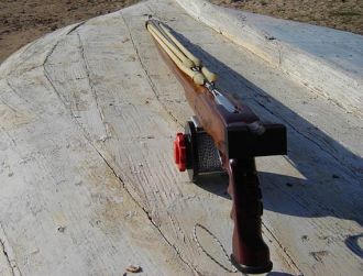 - używanie standardowych gum (ewentualnie dodanie dodatkowych) z mostkiem trzymającym strzałę gdy kusza jest do góry nogami