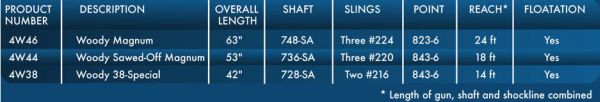 Wesje od 60" do 73". Trzy do sześciu gum 5/8". Strzała 5/16" albo 3/8" i długości odpowiednio 60-72". Wszystkie kusze Sea Sniper to ręczna robota.
