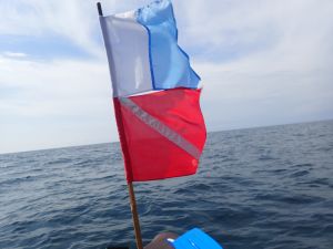 - W miejscu nurkowania boja lub łódź z flagą nurkową lub flagą kodu A