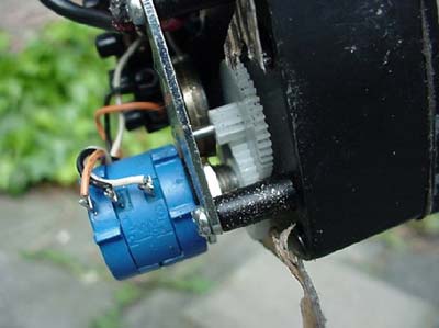 This method uses a small "reduction-gear", probably from some childish toy, in order to reduce the motor's rotation... this way it's possible to use for read-out a multiturn pot into actuator's gearbox. Pretty smart, but it always seems difficult to find a reduction-gear like this.