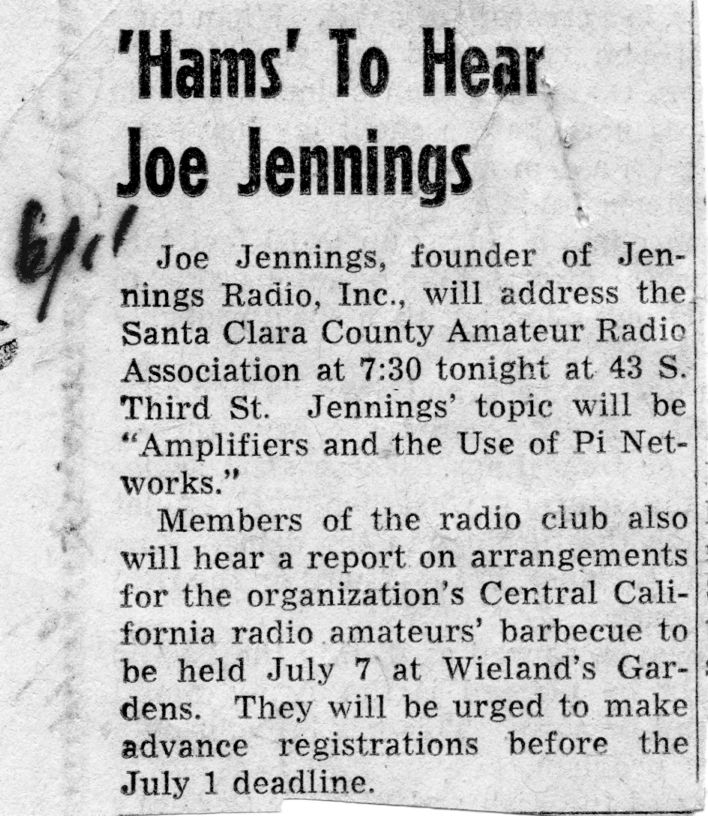 "Nation's Radio 'Hams' Are Of Constant Service" this editorial proclaims. SCCARA is prominently mentioned, as well as other amateur groups. Field Day is mentioned as well as message passing for the public that SCCARA did annually at the County Fair.
