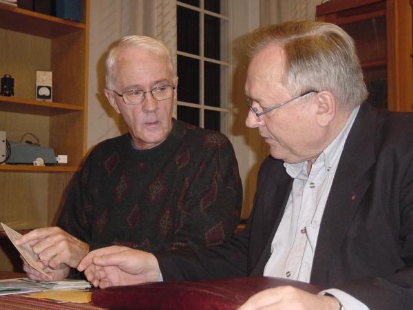 I väntan på att årsmötet skall börja tittar SM3ETC/Jan och SM3AFT/Lennart på några QSL-kort.