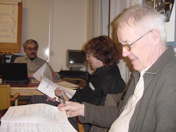Verksamhetsberättelsen studeras av SM3HFD/Håkan, SM3EFS/Lennart och SM3LXH/Ingemar.