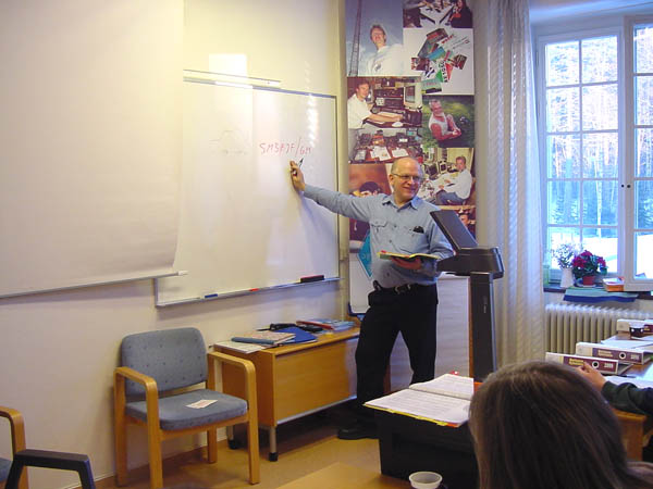 Leif Hansson följer intresserat undervisningen. |