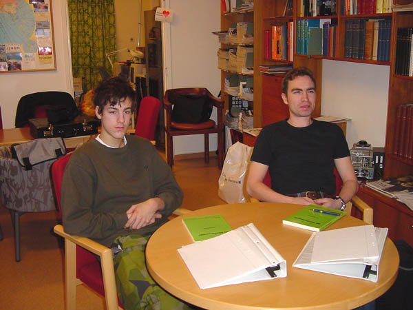 I väntan på fika, Mikael och Roland. |