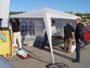 | AMATÖRRADIONS DAG I SUNDSVALL Återigen plockade vi med oss radioutrustning och diverse material och förflyttade oss till parkeringen bredvid Clas Ohlsson i Sundsvall. Vädret var bra med tyvärr blåsigt så att vi fick flera gånger förankra om det partytält som vi stod i. Ett antal intresserade tog sig tid att se vad vi höll på med bl a en svenskamerikan. Under dagen kördes ett 60-tal QSO:n.