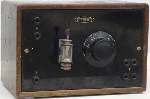 Luxor Special M-a kristallmottagare från 1926-1927 var fabrikens första radio och föranleddes av att Motala långvågssändare startade år 1927, något som skapade omedelbar efterfrågan på billiga mottagare som fungerade utan ström i närområdet. En modellvariant fanns för enbart mellanvåg där övriga svenska sändare var lokaliserade och en annan klarade av både MV och LV. Denna modell som är avsedd enbart för långvåg innehåller en variometer, en rörlig spole inuti en fast, med induktansen 0,75-3 mH. Hylsan för kort antenn ansluter direkt till dioden medan hylsan för lång antenn går till ett uttag på spolen, induktansen därifrån till jord är 100 µH. Det saknades en kondensator över spolen, med 250 pF blir frekvensområdet 170-340 kHz, och jag har funnit att med 10 nF kondensator över hörlurarna blir känsligheten en smula bättre men någon sådan satt nog inte där från början. Kristalldetektorns rörliga nål justeras så att den träffar en aktiv yta, men jag satte en germaniumdiod på insidan av panelen. En utebliven lödning där trådar hade skarvats med enbart tvinning visar att radion troligen även såldes som byggsats. Den kräver en lång utomhusantenn, jordledning och högohmiga hörlurar, men det hjälper inte när det saknas starka sändare i närheten. Den förblir därför en hyllvärmare om jag inte bygger en liten lokalsändare. Bruksanvisning. Ursprungspriset var 20 kr (658 kr) och de nödvändiga hörlurarna kostade ca 15 kr.