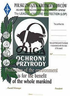 | Wykaz stacji zaliczanych do dyplomu "Ochrona Przyrody". SP1 AHD,AFU,BYP,DTF,GZT,JON,KV,KVD,LOP,LOS,MVQ,MWF,MWN,NQT,RWK SQ1 EIX SP2 AHD /DIG1165/,BMX /DIG864/,EIW,FCW,GSQ,GSI, JPG,KJF,MDD,MDK /DIG4065/,PIK,PMK SQ2 BNM,CFJ SO3 HZA SP3BCE,CUG/DIG5649/,DML,EVC,EXX,FTA,GIL,HD,HJG,IAE,JUN,MFA,NGB,NNP,NYK,OCV,OSX,OTO, PJY,PZK,RAX, SQ3 BML,DVQ, SP4 BBU,GAP,GFG,GKE,ILJ,JI,NDU,OZ,XQN SP5 AHZ,BFW,FLB,GX,ICQ,IDK,MJJ,QWJ,RML, VJQ SQ5 GLB SP6BFM,BGF,BQU,CJZ,FMY,FRF,HAO,IM,JOE,LHP,LUS,LUO,NXB,OPZ,OPL,ORR,PKO,RLM,RYB,RYI,RYJ, SNL,SYR,TGM,TGR,TTW,YEP,ZDA,ZKD SQ6 EMG,FHC,LAT,NCF 3Z6 AEF SP7AAU,ALH,API,BOO,CKY,CPT,CXL,EXY,FQG,GME,IKM,JQQ,KII,LFN,LZD/DIG5348/,MJT,NPT,QHS,RON, SZA, UYL,ZDV,ZX, SQ7 BCG, DCA,DCS, EQN,FZS, SP8 AUP,BSQ,DYS,EMO, GDZ, ICB,IQQ,LNN,LNO,LNC,NCO,NFZ,OON,RHX,XGK,ZBF,ZBX SQ8 AQA,DFM, GBN SP9AAB,ADY,AIO,BIF,DGZ,DLM,DQY,EMV,ENO,ENV,EOH,EQG,FIH,HFW,KVZ,LLS,MCR,MCU,MQD,MRN, MRO,MRY,NLL,NRB,NRD,NSY,NWH,NWN,OHL,OHT,OYC,OYV,OZB,OZK,OZR,PDF,RCF,RTZ,RVH,RRM, SOV,TCV,TNT,TTY,XWD,ZIJ, SQ9 BDB,CXC OK1 AIT,DCE /DIG95/,DDB,DKR /DIG3431/,DNS,DOZ,FED /GIG5159/,FIR,HC,HT,JN /DIG2557, KPA,MEY,MKD, MNI,MVB,NS,SZ,UMI,VLE,VHV,WU /DIG4874/,XG OK2BAQ,BHA,BNN,BTI,BUC,BWT,BWZ,EZ,KKV,PBR,PCY,PKS,PKY,PMM,UEI,UFB,UMN,WFW, YL/DIG3478/,VVN OM1 AA OM2 AD OM3 CAE,CQG,CRH,CVE,FR,JH,MB,RTO,THL,WSW OM5 NJ OM6 AUU,EE,RK,TX/DIG4216/ OM8 LA, OM9 AHA DD9 RY DG0 DRF/DIG4715/, DJ0 MAQ /DIG4893/, DL2 HZA /DIG5271/=SO3HZA (SK 6.7.99) DE0 DXM ON4 CAS / N1TOI Award Manager: SP 9 MQD |