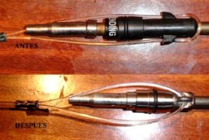 Wszystko to dzięki unikalnej konstrukcji w której w lufie nie ma wody /mały tłok z mono O-ringiem/. Prędkość strzały 6.5 mm o dług 100cm /Tahitiana/ to 22.4 m/s -przy 20atm. A często używa się i 34atm. Waga całej kuszy 1kg. Zupełny brak odrzutu. Rękojeść to zmodyfikowany Omer P. Cztery różne długości kuszy. Strzały oczywiście z najwyższej półki, czyli Devoto. A do tego przydatny manometr. Czułość spustu reguluje się śrubką znajdującą się pod spustem >>>> W Mambie nie ma przełącznika siły strzału Hi/Lo.