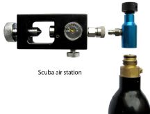Jeśli używamy powietrza problem jest inny. Potrzebny jest pojemnik 1,1l , adaptor i butla z akwalungu. Najlepsze ciśnienie to 150 / 175 barów. Każdy strzał to około 30 cm3 co daje około 35 strzałów z takiego pojemnika. Ale przy powietrzu ciśnienie spada za każdym strzałem, więc przy pierwszy strzale ciśnienie będzie 175 barów, przy drugim 160, przy trzecim 145 barów itd..