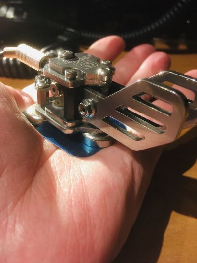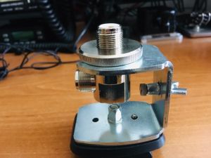 Home made mount with holes for mounting both UC1 and 3/8" sockets.And there is also a threaded hole for mounting a small mast for e.g. a magloop antenna.