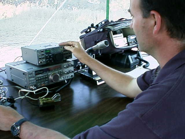 Here Eric, WA6HHQ, operates the K2 at the SRA field day site. The K2 is sitting on top of our TS-440S/AT.